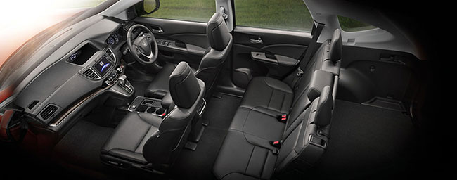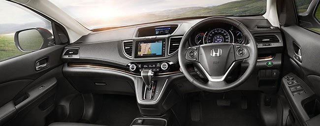 ภายในห้องโดยสารของฮอนด้า ซีอาร์-วี ใหม่ กว้างขวาง หรูหรา และรองรับความสบาย ด้วยอุปกรณ์อำนวยความสะดวกที่ครบครัน ทั้งระบบเครื่องเสียงหน้าจอสัมผัสขนาด 7 นิ้ว แบบ Advanced Touch พร้อมรองรับระบบสั่งการด้วยเสียง SIRI (สำหรับ iPhone 4S ขึ้นไป) และการเชื่อมต่อ Smart Phone (ในบางรุ่น) ช่องเชื่อมต่อ HDMI และช่องเชื่อมต่อ USB จำนวน 2 จุด พวงมาลัยแบบมัลติฟังก์ชั่น สวิตช์ควบคุมระบบ i-MID พร้อมปุ่มรับ-วางสายโทรศัพท์ ระบบเชื่อมต่อโทรศัพท์แบบไร้สาย (Bluetooth) และระบบนำทางเนวิเกเตอร์ รวมถึงระบบสตาร์ทเครื่องยนต์แบบอัจฉริยะ (One Push Ignition System) และระบบควมคุมประตูแบบอัจฉริยะ (Honda Smart Key System) ให้ความคล่องตัวในทุกท่วงท่าด้วยเบาะนั่งด้านคนขับปรับไฟฟ้า 8 ทิศทางพร้อมปุ่มปรับดันหลัง เบาะนั่งผู้โดยสารด้านหน้าปรับไฟฟ้า 4 ทิศทาง และเพิ่มพื้นที่อเนกประสงค์ด้านหลังเพื่อรองรับสัมภาระได้อย่างลงตัวด้วยเบาะแถวหลังพับจังหวะเดียวแบบ One Motion พร้อมแยกพับ 60:40 เพื่อความลงตัวในทุกการใช้งาน