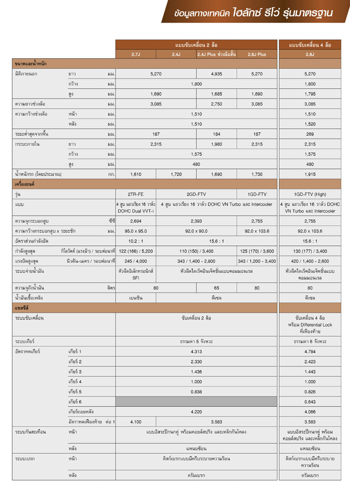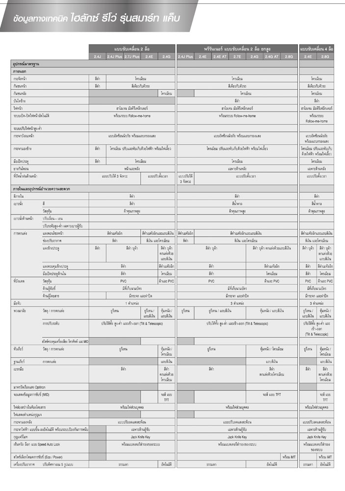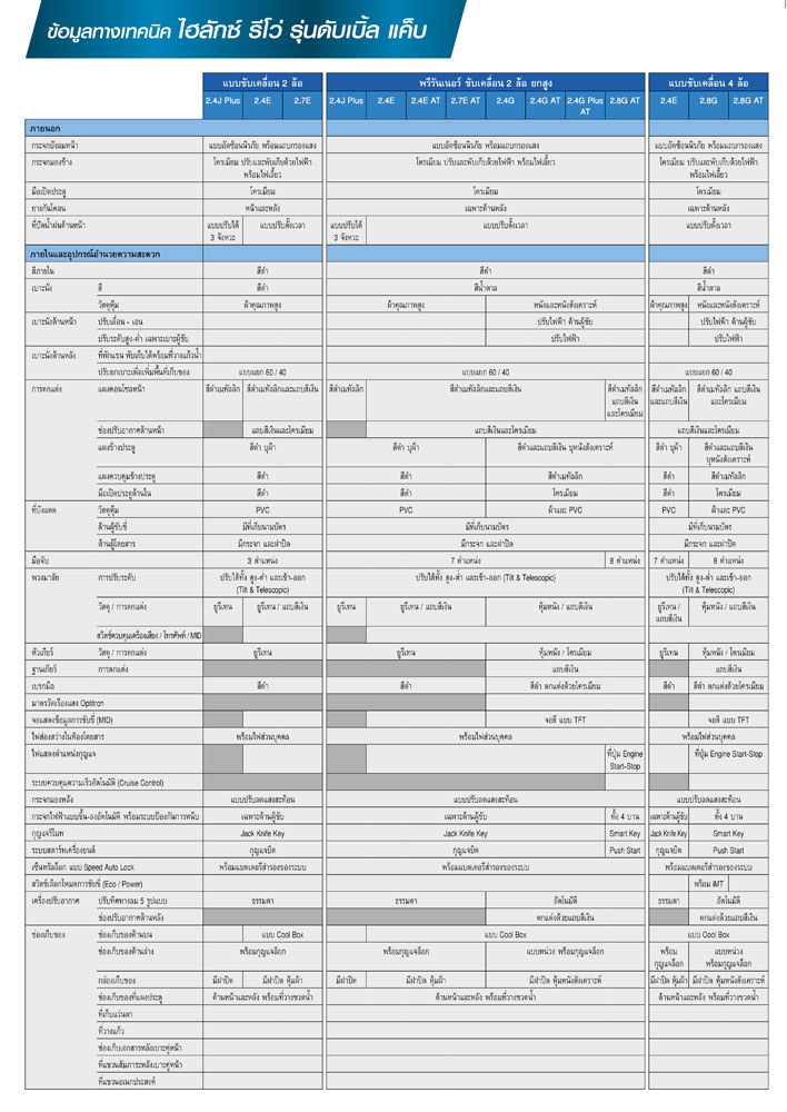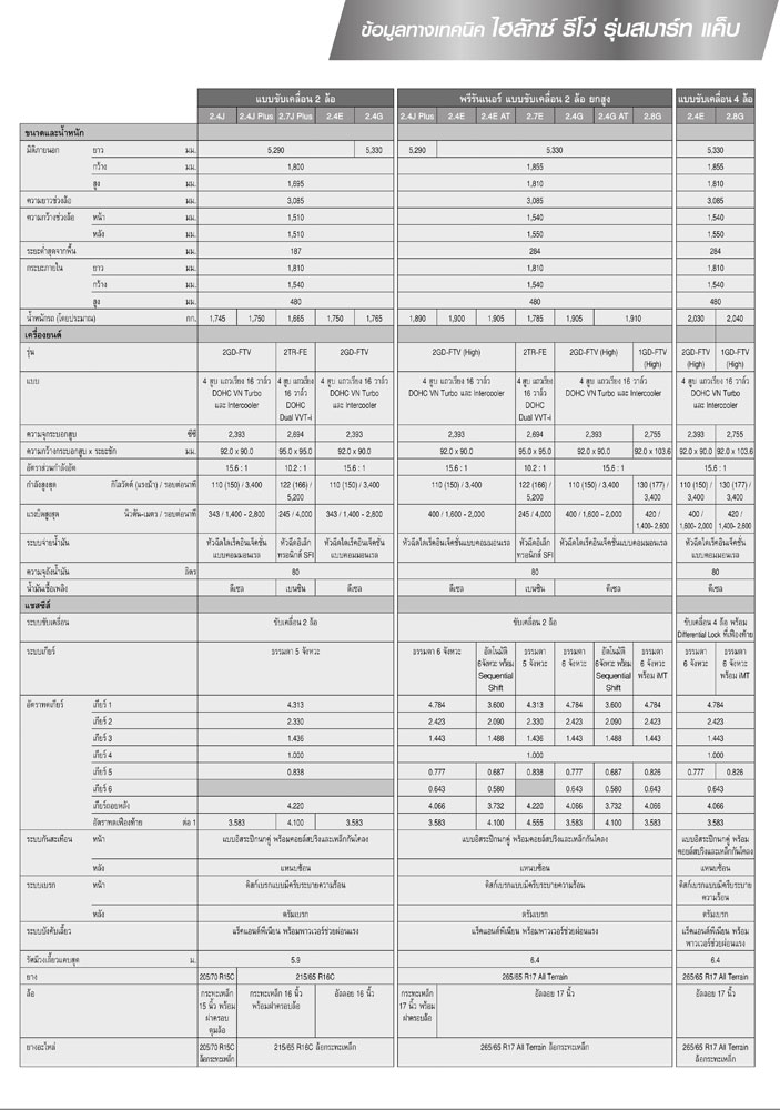 Double Cab 4X2 (ดูตารางสเปค 1 2 3)