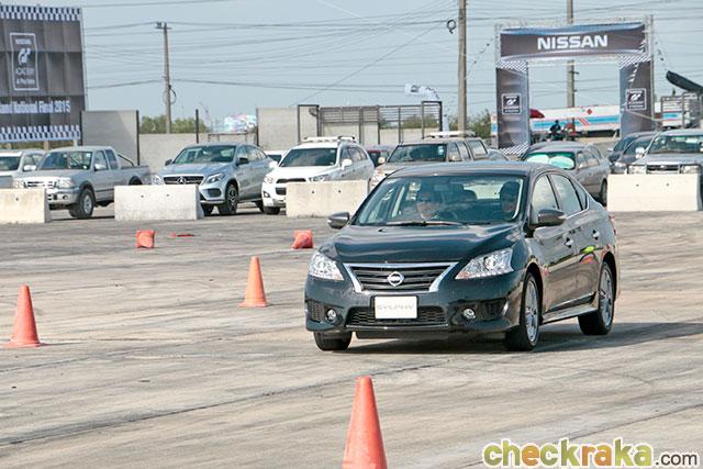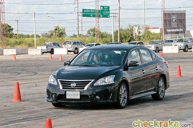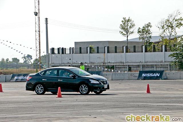 Nissan Sylphy DIG Turbo ที่ได้ลองใน Track สนามที่มีทางตรงยาวๆ อัตราเร่ง และระบบเบรก ที่มีรูปแบบทั้งโค้งแคบ และโค้งตัวเอส และโค้งตัวยู เพื่อทดสอบประสิทธิภาพของช่วงล่างขณะเข้าโค้ง โดยการออกตัวของรถต้องลากรอบให้สูงๆ หน่อย เพราะแรงบิดมาแบบ Flat Torque ที่ความเร็วจะไต่ขึ้นมาเรื่อยๆ ในช่วงความเร็วประมาณ 0-40 กม./ชม. และจะเริ่มพุ่งขึ้นอย่างรวดเร็ว ทำให้ตอนออกตัวนั้น ไม่หวือหวาจนถึงกับหลังติดเบาะ แต่ความเร็วขึ้นพรวดแบบรถสปอร์ตก็ว่าได้