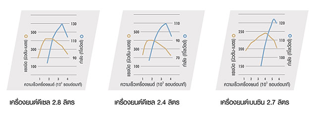 เครื่องยนต์ดีเซล 2.8 ลิตร (เกียร์อัตโนมัติ 6 สปีด) ให้กำลังสูงสุด 130 กิโลวัตต์ (177 แรงม้า) ที่ 3,400 รอบ/นาที แรงบิดสูงสุด 450 นิวตัน-เมตร ที่ 1,600-2,400 รอบ/นาที