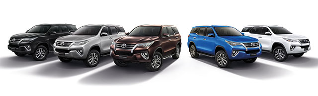 All New Fortuner มีให้เลือกถึง 5 แบบ และมีสีให้เลือกทั้งสิ้น 7 สี โดยเป็นสีใหม่ด้วยกัน 2 สี ได้แก่ สีน้ำตาล Phantom Brown และสีน้ำเงิน Nebula Blue ด้วยราคาเริ่มต้นเพียง 1,199,000 บาท พร้อมเป้าหมายการขายที่ 2,600 คัน/เดือน