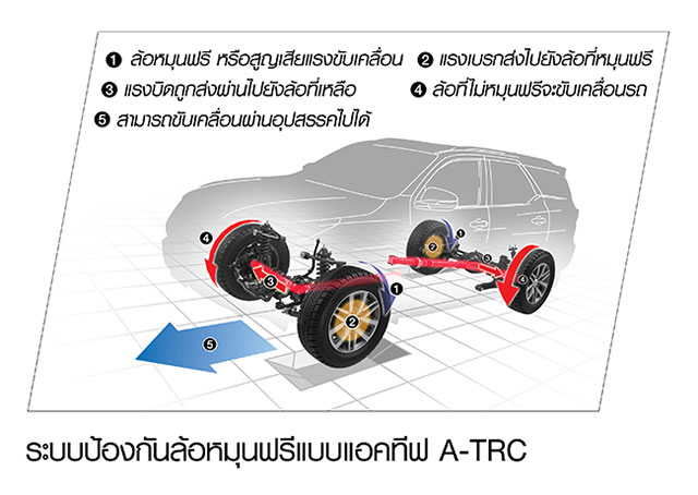 ระบบป้องกันล้อหมุนฟรีแบบแอคทีฟ A-TRC (Active Traction Control) เมื่อเซ็นเซอร์ตรวจจับได้ว่าล้อใดเริ่มสูญเสียแรงขับเคลื่อน ขณะวิ่งผ่านพื้นผิวลื่น ระบบจะลดแรงขับที่ส่งไปล้อนั้น เพื่อป้องกันล้อหมุนฟรี และเพิ่มแรงขับไปยังล้อที่เหลือ