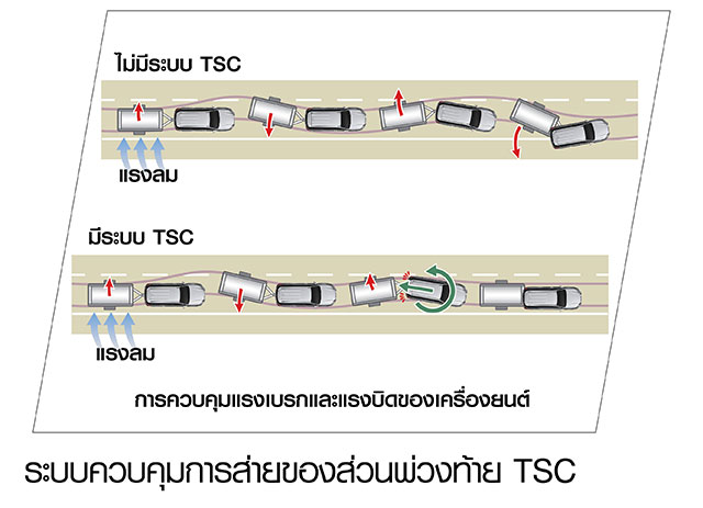 - ระบบควบคุมการส่ายของส่วนพ่วงท้าย TSC (Trailer Sway Control)