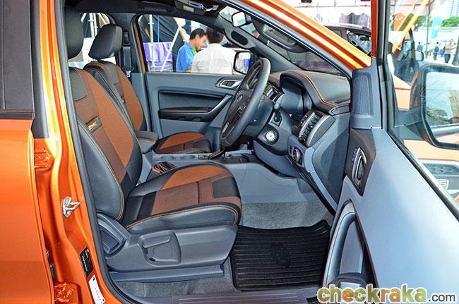 ฟอร์ด เรนเจอร์ ไวล์ดแทรค ใหม่ ออกแบบห้องโดยสารภายในสีส้มทูโทนเน้นความสปอร์ต โฉบเฉี่ยว และทันสมัย สื่อถึงความสะดวกสบายแบบรถยนต์นั่ง คอนโซลหน้าหุ้มด้วยหนังนุ่มต่อการสัมผัสรวมถึงการเดินรอยเย็บสีส้มตลอดแนว เบาะนั่งแบบสปอร์ต รวมถึงเบาะนั่งฝั่งคนขับที่สามารถปรับเปลี่ยนได้ถึง 8 ทิศทางด้วยระบบไฟฟ้า ตกแต่งด้วยลวดลายอันเป็นเอกลักษณ์และรอบเย็บสีส้ม