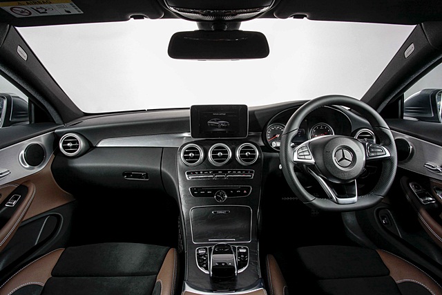ภายในของ C-Class ใหม่ คล้ายกับรุ่นซีดาน ด้วยมาตรวัดแบบกลม 2 ฝั่ง พร้อมจอแสดงผลระหว่างกลาง พวงมาลัยมัลติฟังก์ชันพร้อม Paddle Shift และคันเกียร์ ช่องแอร์ 3 ช่องตรงคอนโซลกลาง และติดตั้งระบบเครื่องเสียงและแผงควบคุมระบบแอร์แบบอัตโนมัติ ถัดลงมาเป็นชุดควบคุมจอแสดงผลบนคอนโซลกลาง touchpad สะดวกสบายด้วยเบาะปรับไฟฟ้า โดย 2 รุ่นย่อยแตกต่างกันที่วัสดุหุ้มเบาะและวัสดุเสริมภายในห้องโดยสาร