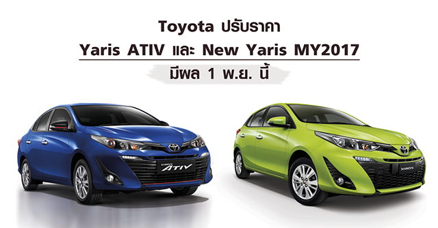3 ต.ค. 60 7,356Toyota ปรับราคา Yaris ATIV และ New Yaris มีผล 1 พ.ย. นี้
