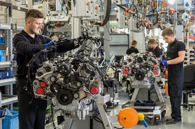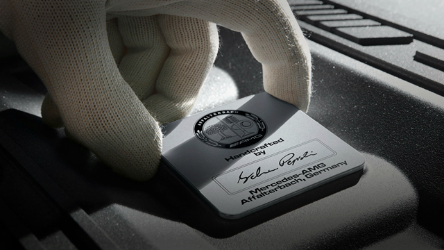 นอกจากนี้ Mercedes-AMG ยังเป็นผู้พัฒนาเครื่องยนต์วี 8 สำหรับรถยนต์นั่ง Mercedes-Benz ทุกรุ่น ซึ่งได้รับการประกอบขึ้นอย่างพิถีพิถันในเมืองอัฟฟาวเตอร์บาค ในขณะที่เครื่องยนต์แบบ 4 สูบ จะประกอบขึ้นที่เมืองโคลเลดา และเครื่องยนต์ V12 จะประกอบขึ้นที่เมืองมานไฮม์ โดย Mercedes-AMG ใช้ปรัชญาการผลิตเครื่องยนต์ทุกเครื่อง แบบ "1 ช่างฝีมือต่อเครื่องยนต์ 1 เครื่อง-one man, one engine" กล่าวคือ เครื่องยนต์ของรถยนต์ Mercedes-AMG แต่ละคันจะผลิตด้วยมือและใช้ช่างฝีมือเพียง 1 คนเท่านั้นตลอดกระบวนการประกอบ และในขั้นตอนสุดท้าย ช่างฝีมือที่ประกอบเครื่องยนต์แต่ละเครื่องจะเซ็นชื่อของตนลงบนแผ่นโลหะที่ติดอยู่บนฝาครอบเครื่องยนต์เพื่อเป็นการรับรองคุณภาพและมาตรฐาน