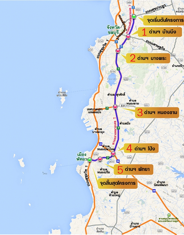 - ด่านพัทยา ตั้งอยู่ที่ต่างระดับโป่ง-ถ.สุขุมวิท (พัทยากลาง) กม.122+300