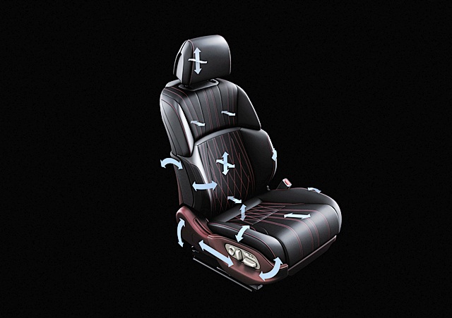 เบาะนั่งตอนหน้าไฟฟ้าปรับ 28 ทิศทาง ระบบนิวเมติกที่พัฒนาขึ้นมาใหม่ ออกแบบมาเพื่อรองรับสรีระทุกส่วนของร่างกายอย่างพอดี เบาะรองไหล่ช่วยเสริมการขับขี่ สร้างความรู้สึกให้เป็นหนึ่งเดียวกับรถ นอกจากนั้นเบาะยังช่วยรองรับสะโพกช่วงหลังเป็นพิเศษ เพื่อรักษาสรีระระหว่างเบรกและเข้าโค้ง รวมถึงเบาะรองรับด้านข้างช่วยกระชับให้ร่างกายทรงตัวนิ่งในช่วงเข้าโค้ง