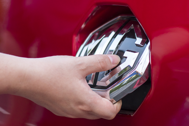 ฝาท้ายสไตล์สปอร์ตของ ZS ไม่ใช่ระบบไฟฟ้าแต่ก็ดูไม่เสียหายอะไร จุดเปิดฝาท้ายจะอยู่ตรงบริเวณโลโก้ MG วิธีเปิดก็ง่ายๆ เพียงเอานิ้วโป้งกดบริเวณโลโก้ MG ลงไปแล้วใช้ 4 นิ้วที่เหลือในการช่วยดึงฝาท้ายขึ้นมาโดยไม่ต้องออกแรงมากนัก เท่านี้ก็เก็บสัมภาระในรถได้แล้ว