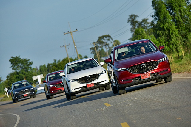 ทริปทดสอบ มาสด้า ซีเอ็กซ์-5 ใหม่นี้ เป็นอีเว้นท์ใหญ่ โดยมีทั้งหมด 3 กรุ๊ป กรุ๊ปแรกจากเชียงราย กรุ๊ปที่ 2 น่านลงมาเรื่อยๆ จนถึงอุบลราชธานี และกรุ๊ปสุดท้ายซึ่งทีมงานเช็คราคา.คอมร่วมรับไม้ต่อขับจากอุบลราชธานี-สระแก้ว-กรุงเทพฯ รวมระยะทางทั้งหมด 655 กิโลเมตร โดย CX-5 ทั้งหมด 12 คัน แบ่งเป็น 2.0 SP 6 คัน, XD 2.2 1 คัน และ XDL 2.2 4WD 5 คัน และสลับขับจนครบ 2 รุ่นเครื่องยนต์