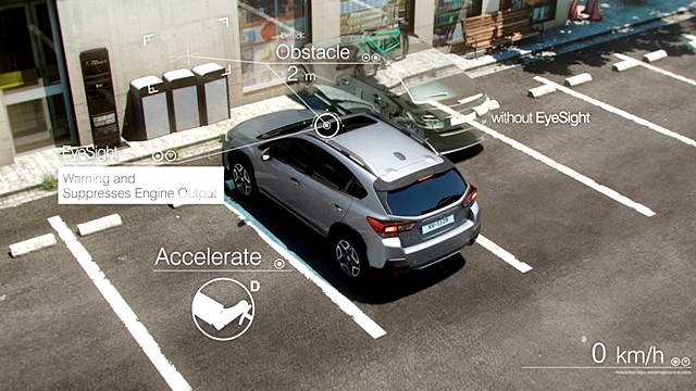 ** ระบบเบรกก่อนชน (Pre-Collision Braking System) อาจมีข้อจำกัดในบางสภาวะการขับขี่ ขึ้นอยู่กับความเร็วของรถและวัตถุ ความสูงของวัตถุ และเงื่อนไขอื่นๆ ซึ่งอาจไม่เป็นไปตามเงื่อนไขสำหรับการทำงานของระบบ EyeSight