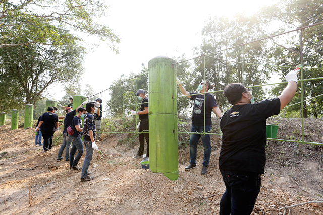 หลังจากลงมือทำโป่งเทียมเสร็จแล้วก็ย้ายกันออกมาช่วยกันสร้างรั้วกึ่งถาวร ด้วยการเชื่อมเหล็กเส้น และทาสี ก็เพื่อช่วยแยกพื้นที่ระหว่างช้างป่าที่เข้ามาหาอาหาร กับชาวบ้านที่ทำไร่ ทำสวนผลไม้และเป็นผู้ได้รับผลกระทบจากการเข้ามาของช้างป่า ก็เพื่อให้คนและช้างอยู่ร่วมกันในพื้นที่ดังกล่าวให้ได้ในอนาคต และยังช่วยบรรเทาปัญหาช้างป่าบุกรุกเขตชุมชนซึ่งสร้างความเสียหายให้กับชาวบ้านในพื้นที่ ซึ่งรั้วกึ่งถาวรนี้เกิดจากความร่วมมือกันระหว่างอุทยานแห่งชาติแก่งกระจานและชุมชนท้องถิ่น