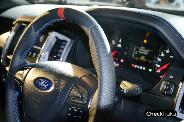 New Ford Ranger RAPTOR (ฟอร์ด เรนเจอร์ แร็พเตอร์) ยังได้ถูกออกแบบภายในด้วยความประณีตตาม DNA ของ Ford Performance ที่ผสานสีสันต่าง ๆ และการเลือกสรรวัสดุที่คงทนและเหมาะสมสำหรับการขับขี่แบบออฟโรดและการใช้งานในชีวิตประจำวัน เบาะที่นั่งได้รับการออกแบบเป็นพิเศษ เพื่อรองรับการใช้งานการขับขี่แบบออฟโรดความเร็วสูง ช่วยให้ผู้ขับขี่สามารถควบคุมรถขณะวิ่งด้วยความเร็วสูงได้อย่างง่ายดาย ทั้งยังมอบความสะดวกสบายระหว่างการเดินทางอย่างเหนือชั้น การเลือกใช้หนังกลับเป็นวัสดุของเบาะนั้น ช่วยให้ผู้ขับขี่และผู้โดยสารยึดเกาะที่นั่งได้ดียิ่งขึ้น ซึ่งสะท้อนให้เห็นถึงการพิจารณาการเลือกใช้วัสดุต่าง ๆ โดยคำนึงถึงการใช้งานจริง