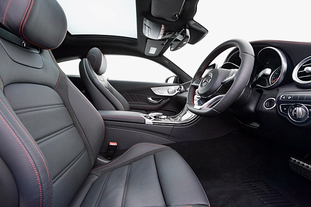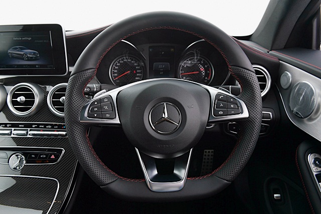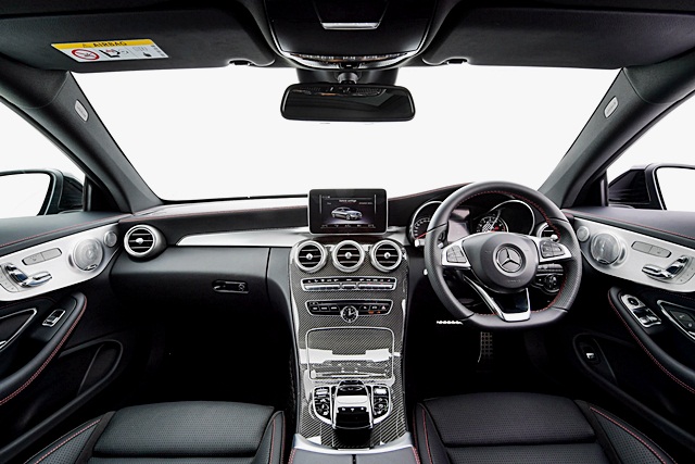 ภายในสปอร์ตตกแต่งสไตล์ AMG Performance พวงมาลัยแบบ Page 4 ท้ายตัด เบาะคู่หน้าแบบสปอร์ตเต็มรูปแบบ ระบบป้อนเข็มขัดนิรภัย ชุดเครื่องเสียง Burmester ภายในแบบ AMG Carbon-fibre และอลูมิเนียม