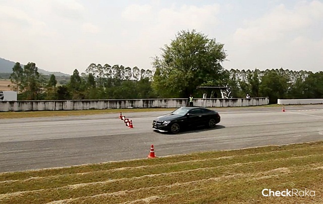 ในฐานนี้เป็นการขับเข้าโค้งทั้งตัว "S" โค้งสั้นและโค้งยาวตามรูปแบบของสนาม โดยปล่อยตัวจากจุดเริ่มต้นและเมื่อเข้าใกล้โค้งจะมีไพล่อนเพื่อกำหนดจุดเบรก และหักเลี้ยวเข้าส่วนโค้งให้ผู้ขับทดสอบรู้จังหวะการเข้าโค้งการเบรกและการควบคุมทิศทางรถได้ถูกต้องและปลอดภัย และแน่นอนว่า AMG C 43 4MATIC Coupe ไม่ทำให้ผิดหวัง แม้จะเข้าโค้งเร็วเกินไปและบางครั้งก็กระชากพวงมาลัยมากไปหน่อย แต่ AMG ก็เอาอยู่ครับ