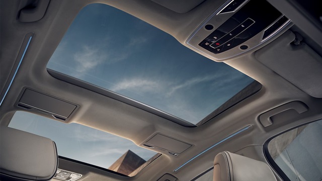 หลังคา The new Audi A8 L แบบพาโนรามิคกลาส 2 ชั้น ทำให้มีความแข็งแรง และลดเสียงรบกวนจากภายนอก มีขนาดใหญ่จากบริเวณเบาะนั่งด้านหน้าไปถึงด้านหลัง ช่วยให้รถโปร่งโล่ง หรูหรา และมีแผ่นบังแดดที่ควบคุมด้วยระบบไฟฟ้า