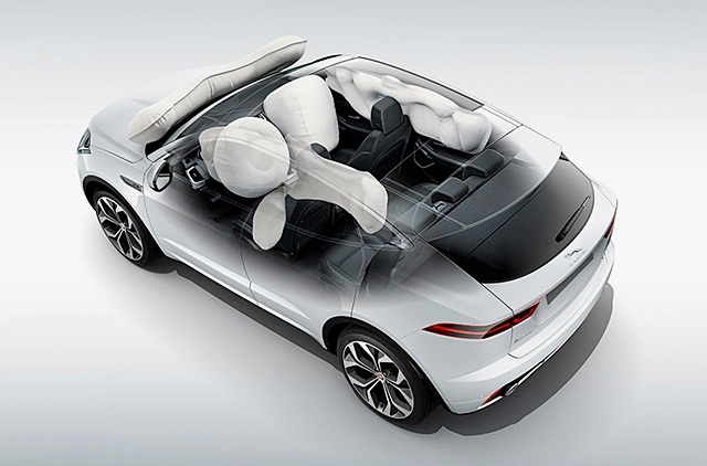 NEW JAGUAR E-PACE (นิว จากัวร์ อี-เพช) มีอีกคุณสมบัติเด่นคือ เทคโนโลยีด้านความปลอดภัยและระบบช่วยเหลือผู้ขับขี่ ด้วยเซนเซอร์ช่วยจอดหน้า-หลัง โดยกล้องวิดีโอที่ตัวรถยังทำงานเชื่อมต่อกับระบบบังคับควบคุมพวงมาลัยพาวเวอร์ไฟฟ้า ลดจุดอับสายตาและลดความเสี่ยงในการเฉี่ยวชนจากด้านข้างเมื่อขับขี่บนถนนที่มีหลายเลน และยังมีถุงลมนิรภัยสำหรับคนเดินถนนในกรณีที่เกิดการชน ซึ่งติดตั้งอยู่ใต้ขอบของฝากระโปรงหน้า ทั้งหมดเป็นคุณสมบัติและอุปกรณ์มาตรฐานที่มีอยู่ในจากัวร์ อี-เพซทุกคัน
