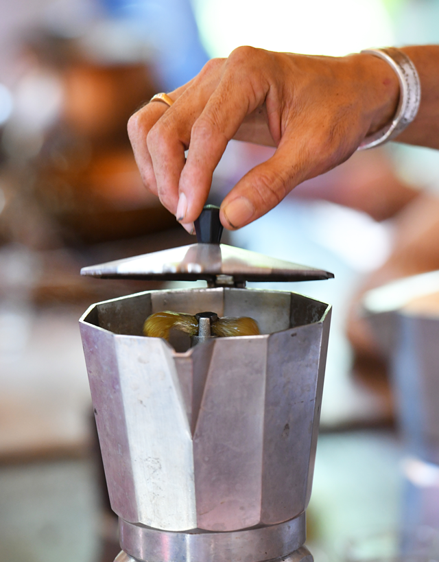 มาถึงที่นี่เราได้เรียนรู้การคั่ว การบด และชิมกาแฟจากฝีมือที่เราทำ อีกทั้งคุณปีเตอร์ แกลลี ยังได้ร่วมทำกิจกรรมครั้งนี้ไปกับเรา แม้อากาศจะร้อน ก็ไม่ทำให้เป็นอุปสรรคที่จะเรียนรู้ กับการที่ได้พบประสบการณ์ใหม่ๆ ความสุขในแบบพอดี ความสุขในแบบพอเพียง ไปกับเกษตรกร อินดี้ผู้นี้