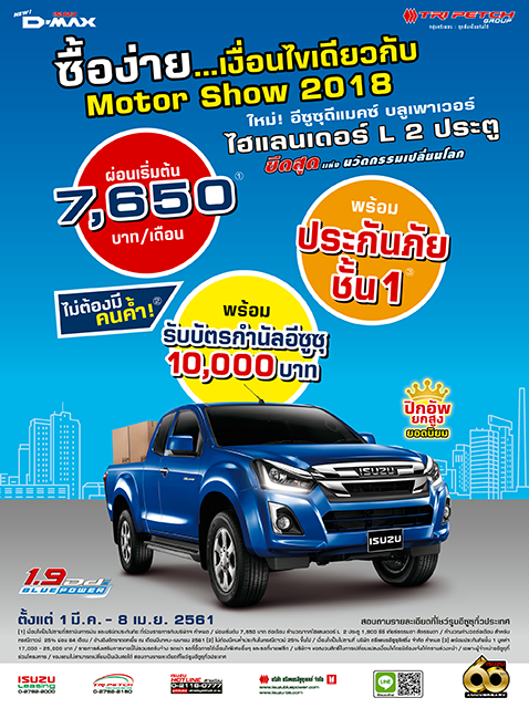 เริ่มแล้วตั้งแต่ 1 มี.ค. - 8 เม.ย. 2561 สอบถามรายละเอียดที่โชว์รูมอีซูซุทั่วประเทศ