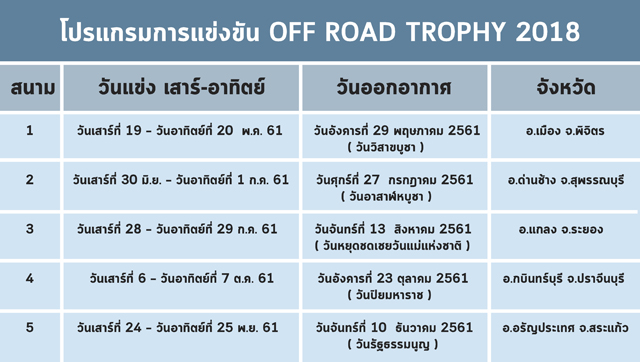 โปรแกรมการแข่งขัน OFF ROAD TROPHY 2018