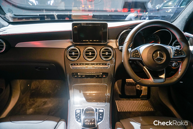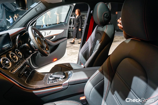 Mercedes-AMG GLC 43 4MATIC Coupe' (CKD) โดดเด่นด้วยเบาะที่นั่งหุ้มหนังแบบ AMG Sport seat ตัดสลับ DINAMICA microfibre ตกแต่งด้วยด้ายสีแดง เพิ่มความเร้าใจด้วย AMG Carbon-fibre โดยเบาะนั่งสำหรับผู้ขับขี่และผู้โดยสารด้านหน้าปรับระดับด้วยระบบไฟฟ้า พร้อมหน่วยบันทึกความจำ, ชุดคันเร่งและแป้นเบรกแบบสปอร์ต, พวงมาลัยมัลติฟังก์ชันแบบสปอร์ตท้ายตัด หุ้มด้วยหนัง nappa คุณภาพสูง, พวงมาลัยนิรภัยพร้อมพาวเวอร์ ปรับน้ำหนักตามความเร็วรถ, กาบบันได สแตนเลส พร้อมสัญลักษณ์ AMG แบบเรืองแสง, ระบบกุญแจแบบ KEYLESS-GO