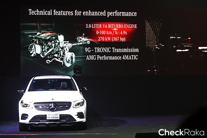 Mercedes-AMG GLC 43 4MATIC Coupe' (CKD)' มาพร้อมกับเครื่องยนต์ AMG (ปรับปรุงโดย AMG) แบบ V6 เทอร์โบคู่ ที่มีจุดเด่นในเรื่องระบบแรงดันเสริมท่อสำหรับนำอากาศของชุดเทอร์โบ (boost pressure) ส่งผลให้สามารถเพิ่มแรงม้าและแรงบิดของเครื่องยนต์รุ่นนี้ได้มากถึง 367 แรงม้า และแรงบิดสูงสุด 520 นิวตันเมตร พร้อมระบบส่งกำลังแบบ 9G-TRONIC