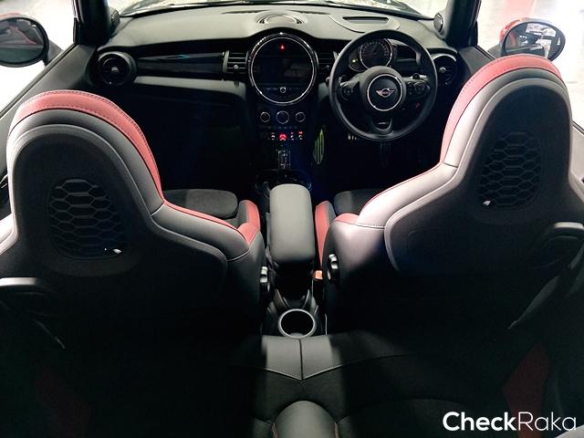 ภายในห้องโดนสาร มินิ จอห์น คูเปอร์ เวิร์คส์ คอนเวิร์ตทิเบิล ใหม่ คงความรู้สึกแบบสปอร์ต พวงมาลัยมัลติฟังก์ชันหนังแท้ แป้นเบรก คันเร่ง และที่พักเท้าสแตนเลส สตีล มือจับประตูและที่หุ้มเกียร์ รวมทั้งเพดานห้องโดยสารสีดำ anthracite ในสไตล์จอห์น คูเปอร์ เวิร์คส์ และยังให้ความสนุกสนานในทุกการขับขี่ด้วยพลังเสียงจากลำโพง Harman Kardon HiFi ถึง 12 ตัว พร้อมจอระบบสัมผัสขนาด 8.8 นิ้ว และเทคโนโลยีเชื่อมต่อ MINI Connected เพื่อการเชื่อมต่ออย่างไร้ขีดจำกัดกับสมาร์ทโฟน