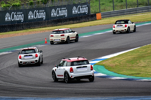 จากนั้นพอครบก็สลับไปขับรุ่นอื่น ซึ่งล้วนใช้ขุมพลังเดียวกันจนครบ พอสรุปได้ว่า ด้วยขุมพลัง JCW ที่ให้กำลังสูงสุดถึง 231 แรงม้า สามารถตอบสนองการขับแบบแทร็คเดย์ในสนามแข่งรถระดับโลกได้อย่างยอดเยี่ยม ด้วยแฮนด์ลิ่งที่ฉับไว และคล่องตัวสุดๆ ในรุ่น แฮทช์และเปิดประทุน ทำให้การขับเปี่ยมไปด้วยความสนุกและมั่นใจ ส่วนตัวถัง 5 ประตู คลับแมนและคันทรี่แมน ก็ยังให้บาลานซ์ที่ดีเยี่ยม ด้านระบบเบรกของ JCW ให้ความมั่นใจเพียงพอแม้ขับต่อเนื่องหลายรอบ การชะลอ-หยุดช่วงสุดทางตรงยาวของสนามและก่อนเข้าโค้งซึ่งล้วนมาด้วยความเร็วสูงนั้น ทำได้อย่างน่าพอใจไม่มีอาการเฟดให้รู้สึก แม้รอบหลังอาจต้องออกแรงมากขึ้นก็ตาม ด้วยกริ๊ปของยางและความร้อนสะสมต่อเนื่อง โดยรวม มินิ JCW เป็นรถที่มีขุมพลังแรงทำให้ขับสนุก พิสูจน์แล้วแม้เป็นสนามแข่งขนาดใหญ่ นับเป็นตัวเลือกสำหรับคนที่ชื่นชอบมินิที่เปี่ยมไปด้วยสมรรถนะรอบด้าน ตอบสนองอารมณ์สปอร์ตได้อย่างดีเยี่ยม คล่องตัวและสะท้อนเอกลักษณ์ของผู้ครอบครองได้อย่างชัดเจน