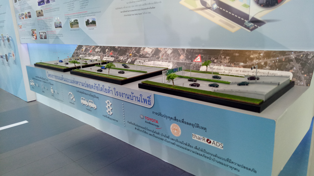 ยิ่งไปกว่านั้น เพื่อยกระดับความปลอดภัยทางถนนให้เป็นรูปธรรมมากยิ่งขึ้น ได้ทำการปรับปรุงจุดเสี่ยงและสภาพแวดล้อมทางถนน โดยโตโยต้าได้ร่วมมือกับกรมทางหลวง แขวงการทางฉะเชิงเทรา และศูนย์วิจัยอุบัติเหตุแห่งประเทศไทย (TARC) ปรับปรุงและติดตั้งอุปกรณ์เทคโนโลยีความปลอดภัย เพื่อยกระดับความปลอดภัยบนถนนทางหลวงหมายเลข 314 ตั้งอยู่ด้านหน้าโรงงานโตโยต้า บ้านโพธิ์ และบริเวณนิคมอุตสาหกรรมเกตุเวย์ เพื่อเป็นถนนต้นแบบด้านความปลอดภัย และมุ่งหวังว่า จะก่อให้เกิดการนำไปปรับปรุงจุดเสี่ยงทางถนนบริเวณหน้าบ้านของพวกเราทุกคน ให้เกิดความปลอดภัยในการสัญจร