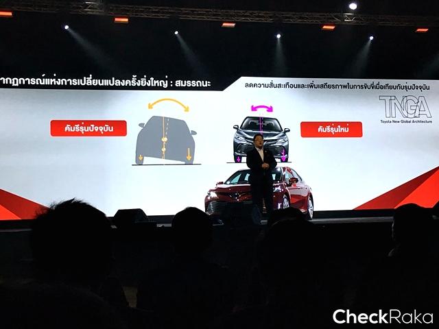 โตโยต้า คัมรี ใหม่ ได้รับการพัฒนาภายใต้แนวคิด Unprecedented Change ปรากฎการณ์แห่งการเปลี่ยนแปลงครั้งยิ่งใหญ่ โดยได้นำสถาปัตยกรรมยานยนต์ใหม่ของโตโยต้า TNGA ที่ถือเป็นหลักในการปฏิรูปโครงสร้างและเครื่องยนต์ มาปรับใช้กับคัมรีใหม่ เพื่อให้บรรลุเป้าหมายภายใต้แนวคิดการท้าทายในการผลิตยนตรกรรมที่ดียิ่งกว่าของโตโยต้า (Ever-Better Cars)