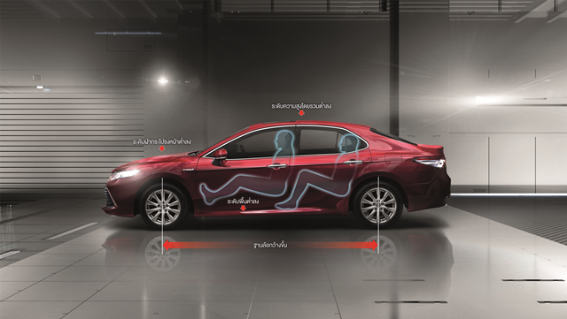 มาตรฐานความปลอดภัยใหม่ระดับโลกของรถโตโยต้า เพิ่มความมั่นใจสูงสุดความปลอดภัยของผู้โดยสาร ถือเป็นสิ่งสำคัญลำดับแรกของโตโยต้า โดยคัมรี ได้รับการติดตั้งเทคโนโลยีด้านความปลอดภัยขั้นสูงสุดไว้มากมาย อาทิ ระบบความปลอดภัยก่อนการชน (PRE-COLLISION SYSTEM) ระบบควบคุมและปรับลดความเร็วอัตโนมัติ (DYNAMIC RADAR CRUISE CONTROL) ระบบเตือนเมื่อออกนอกเลนพร้อมพวงมาลัยหน่วงอัตโนมัติ (LANE DEPARTURE ALERT) พร้อมด้วยการติดตั้งถุงลมนิรภัยรอบคัน 9 ลูก ซึ่งถือได้ว่ามากที่สุดในรถระดับเดียวกัน