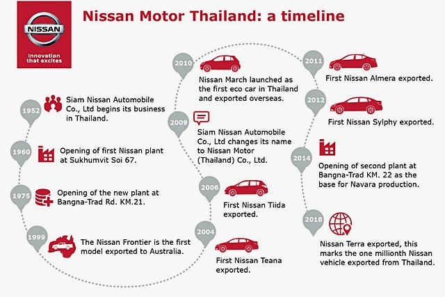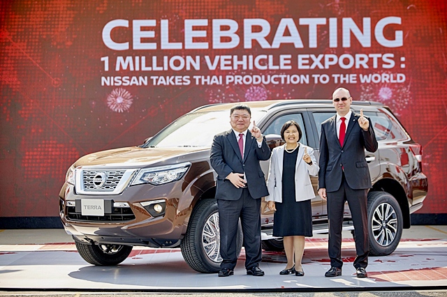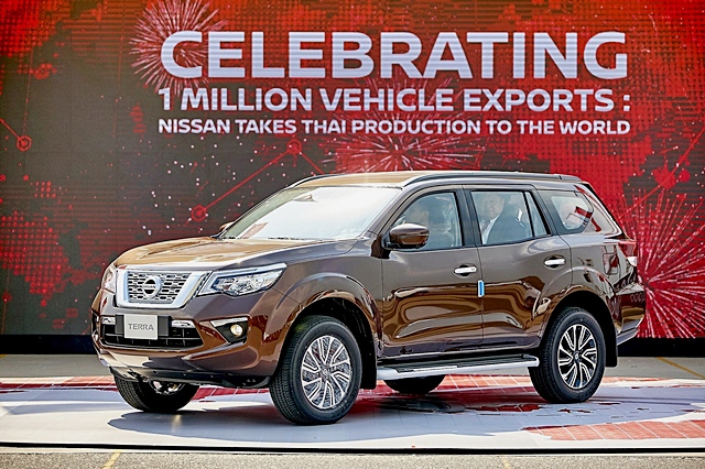 นิสสัน ประเทศไทย ฉลองความสำเร็จในการผลิตรถยนต์เพื่อการส่งออกรถยนต์ครบ 1 ล้านคัน ไปยังจุดหมายปลายทางทั่วโลกครบ 1 ล้านคัน ซึ่งรถยนต์คันที่ 1 ล้าน นำโดยนิสสัน เทอร์ร่า ใหม่ รถยนต์อเนกประสงค์ พรีเมียมเอสยูวีแบบตัวถังบนแชสซีส โดยเป็นรถยนต์ที่โรงงานนิสสัน ประเทศไทยดำเนินการผลิตเพื่อส่งออกไปยังทั่วโลก