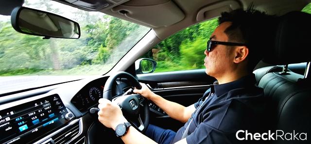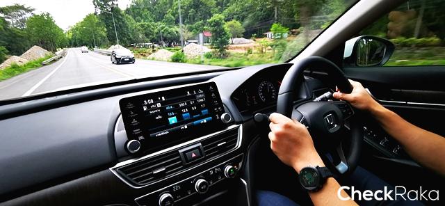 เมื่อผู้เขียนเปลี่ยนมาขับการขับผ่านช่วงที่เป็นถนนชุมชนมีรถร่วมทางมาก ก็พบว่าการเร่งแซง เบรกชะลอหยุดทำได้อย่างไหลลื่น และมั่นใจ โดยเฉพาะในโหมดการขับแบบ Sport ที่ให้รอบการใช้งานมากกว่า ด้านเกียร์อัตโนมัติแบบ CVT ถ้าเข้าใจในการทำงานก็หาจังหวะค่อยๆ เติมเพื่อทำอัตราเร่งสวยๆ ได้สบาย การทำงานของช่วงล่างในแอคคอร์ดเทอร์โบ ตอบสนองได้ดีเยี่ยม ออกสะเทือนอยู่บ้างเมื่อขับผ่านถนนคอนกรีต เส้นทางทดสอบในครั้งนี้ดูไม่อำนวยต่อการขับมากนัก ระยะทางกว่า 80 กม. คิดว่าสั้นไปต่อสัมผัสสมรรถนะในหลายๆ ด้าน แต่เบื้องต้น แอคคอร์ด ใหม่ รุ่นเทอร์โบ ก็ให้คำตอบว่าเครื่องยนต์ขนาดเล็ก 1.5 ลิตร ที่ได้เทอร์โบอัดอากาศช่วยเหมือนกับในฮอนด้าซีวิคนั้น สามารถรองรับตัวถังขนาดใหญ่อย่างแอคคอร์ดได้สบาย และตอบสนองการใช้งานได้ดีกว่าเครื่องยนต์ NA แบบเดิมๆ จากรุ่นที่ผ่านมา