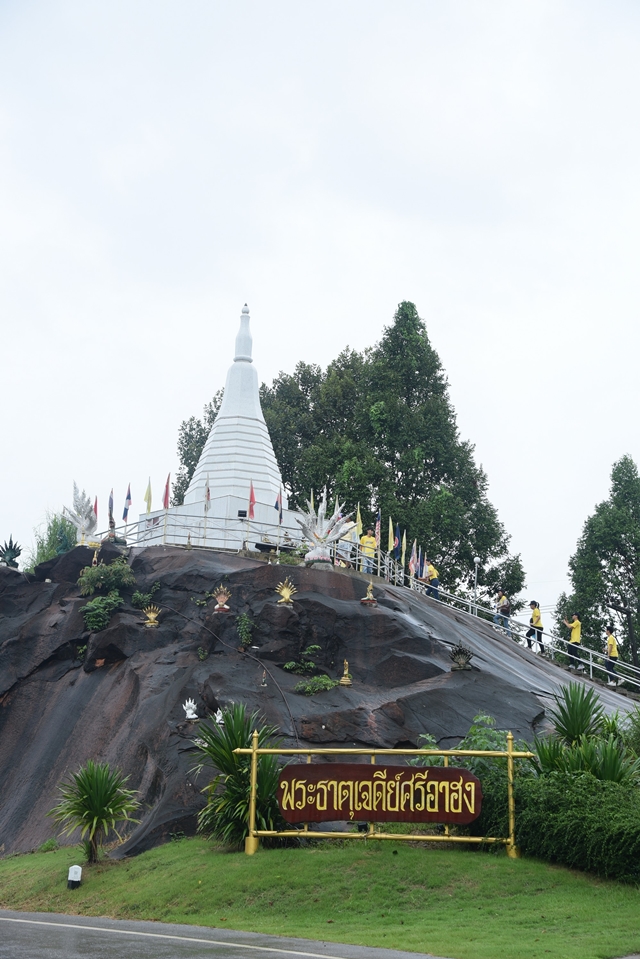 มีพระธาตุเจดีย์ศรีอาฮง ตั้งอยู่บนเนินสูงสวยงามมองเห็นโดดเด่นจากริมถนน สามารถเดินขึ้นบันไดไปกราบไหว้สักการะขอพรเพื่อความเป็นสิริมงคล