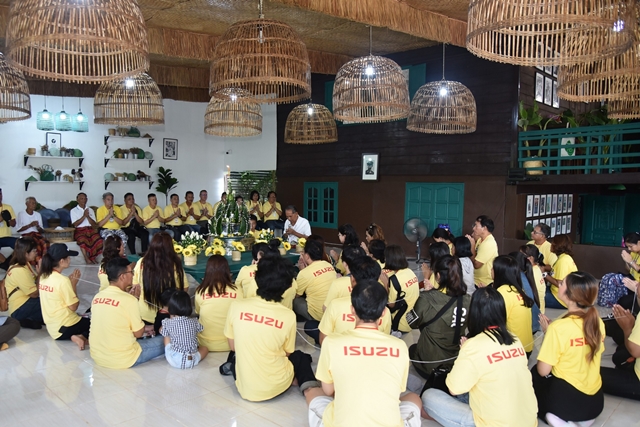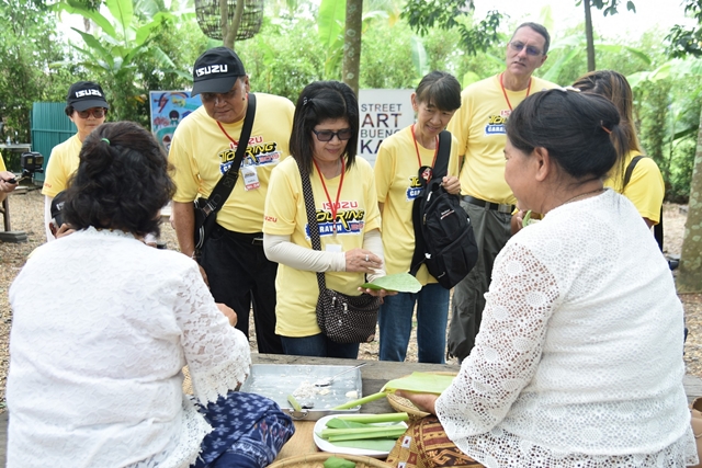 ก่อนออกเดินทางสู่ "พิพิธภัณฑ์ชุมชนมีชีวิต" ซึ่งตั้งอยู่ในหมู่บ้านขี้เหล็กใหญ่ อำเภอโซ่พิสัย จังหวัดบึงกาฬ เป็นหมู่บ้านที่เงียบสงบโอบล้อมด้วยธรรมชาติ ยังคงมีวัฒนธรรม และวิถีชีวิตแบบดั้งเดิมของชาวไทยอีสานให้ศึกษา จุดเด่นของที่นี่ คือ ศิลปะ โดยนำแนวคิดการออกแบบร่วมสมัยอย่างเช่น สตรีทอาร์ต เข้ามาผสมผสานให้ดูสวยงาม และมีอัตลักษณ์ของชุมชน ให้กลายเป็นแหล่งท่องเที่ยวแบบยั่งยืน ซึ่งสมาชิกประชาคมอีซูซุได้ร่วมพิธีบายศรีสู่ขวัญ ตามธรรมเนียมของชาวไทยอีสาน เพื่อเป็นสิริมงคลแก่ผู้มาเยี่ยมเยือน นอกจากนี้ยังได้ร่วมเวิร์กช็อปประดิษฐ์ดอกข่า และทำข้าวต้มมัดกันอย่างเพลิดเพลิน ในช่วงบ่าย หลังจากรับประทานอาหารกลางวัน ณ ร้านครัวเวียงจันทร์ จังหวัดหนองคาย เรียบร้อยแล้ว