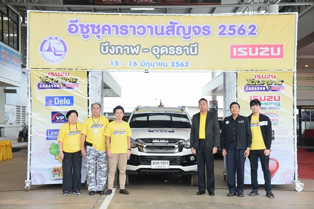 "อีซูซุคาราวานสัญจร" ประจำปี 2562 เส้นทางที่ 1 ได้รับเกียรติจาก คุณธวัชชัย ศรีทอง รองผู้ว่าราชการจังหวัดบึงกาฬ, คุณภิญโญ แสงแก้ว รองผู้อำนวยการการท่องเที่ยวแห่งประเทศไทยสำนักงานอุดรธานี, มร. ยูตะ ทานากะ ผู้ช่วยผู้จัดการทั่วไป บริษัท ตรีเพชรอีซูซุเซลส์ จำกัด และคุณพัฒนเดช อาสาสรรพกิจ ผู้อำนวยการจัดคาราวาน กล่าวต้อนรับและตีธงปล่อยขบวนคาราวานรถอีซูซุจำนวนกว่า 30 คัน พร้อมด้วยคณะสื่อมวลชน ณ บริษัท อีซูซุบึงกาฬ จำกัด