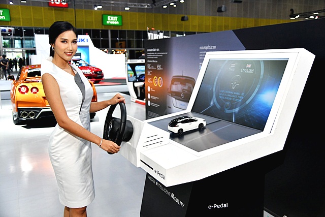 ภายในบูธนิสสันแบ่งเป็นหลากหลายโซน สำหรับโซนการศึกษาเรื่องยานยนต์ไฟฟ้าประกอบด้วยเครื่องจำลองการขับขี่ e-PEDAL ซึ่งเป็นเทคโนโลยีหลักของนิสสัน อินเทลลิเจนท์ โมบิลิตี ที่ให้ผู้ขับขี่ใช้เพียงคันเร่งเดียวในการเร่งหรือลดความเร็ว รวมถึงเบรครถยนต์ที่มีอยู่ในลีฟ ใหม่ นอกจากนี้ลูกค้ายังสามารถทดลองขับนิสสัน ลีฟ ใหม่ รถยนต์พลังงานไฟฟ้าเต็มรูปแบบ เพื่อเรียนรู้การขับขี่รถยนต์ไฟฟ้าและสัมผัสถึงความเงียบและสมรรถนะในการเร่งความเร็วอันทรงพลังของรถยนต์ที่เป็นสัญลักษณ์ของนิสสัน อินเทลลิเจนท์ โมบิลิตี