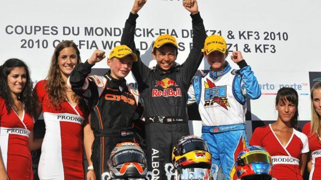 Albon เริ่มต้นเส้นทางด้วยการเป็นนักขับเยาวชนของ Red Bull ในปี 2012 ซึ่งเมื่อผลงานไม่น่าประทับใจ จึงตัดเขาออกจากโปรแกรมเยาวชนของทีมเมื่อสิ้นปี 2012 นั่นเอง จากนั้นก็ย้ายไปเป็นเยาวชนของทีม Lotus อีก 2-3 ปีถัดมา เมื่อ Lotus ถอนทีมออกจาก F1 เมื่อจบฤดูกาล 2015 Albon ได้ขยับมาแข่งขันใน F3 ยุโรป จบฤดูกาลเป็นอันดับที่ 7 ตามหลังนักขับหน้าใหม่ที่เพิ่งแข่งรายการนี้ปีแรก ทั้ง Charles Leclerc , Lance Stroll และ George Russell ต่อมาเมื่อเข้ามาแข่งขันในรายการซัพพอร์ตของ F1 ทั้ง GP3 และ F2 ความสามารถของเขาก็เป็นที่จับตามองมากขึ้น กระทั่งตกลงเซ็นสัญญากับทีม Formula-E ของนิสสัน เพื่อเป็นนักขับในฤดูกาล 2018-19 แล้ว Red Bull กลับยื่นข้อเสนอที่ยากจะปฎิเสธ