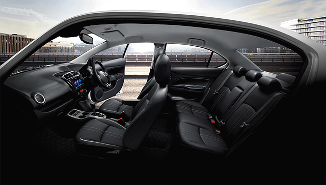 ภายในห้องโดยสารของรถซิตี้คาร์ใหม่ทั้งสองรุ่นมาพร้อมการยกระดับใหม่ ทั้งจอแสดงข้อมูลการขับขี่แบบ High Contrast ตกแต่งด้วยลายคาร์บอนดีไซน์ใหม่ เบาะนั่งวัสดุหนังสังเคราะห์ดีไซน์ใหม่ สำหรับ มิตซูบิชิ แอททราจ ใหม่ และ เบาะนั่งวัสดุหนังสังเคราะห์และผ้าดีไซน์ใหม่ สำหรับ มิตซูบิชิ มิราจ ใหม่ เหนือระดับไปอีกขั้นด้วยแผงควบคุมเปิด-ปิดกระจกข้างตกแต่งด้วยลายคาร์บอนดีไซน์ใหม่ พร้อมวัสดุบุนุ่มบริเวณแผงประตู