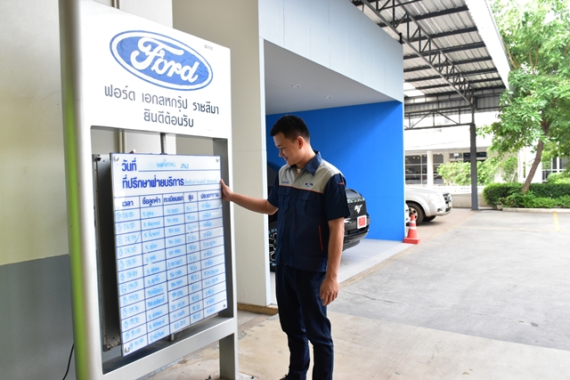 ฟอร์ด ประเทศไทย ร่วมกับพนักงานและผู้บริหารโรงงานฟอร์ด ไทยแลนด์ แมนูแฟคเจอริ่ง หรือ เอฟทีเอ็ม และบริษัทออโตอัลลายแอนซ์ (ประเทศไทย) จำกัด หรือ เอเอที เดินสายเยี่ยมผู้จำหน่ายฟอร์ดในจังหวัดต่างๆ รวม 11 แห่ง ภายในเวลา 5 สัปดาห์ เพื่อสัมผัสการทำงานจริงในศูนย์บริการคุณภาพมาตรฐานระดับโลกของฟอร์ด พร้อมพูดคุยแลกเปลี่ยนความรู้กับผู้บริหารและพนักงานของผู้จำหน่ายฟอร์ดอย่างใกล้ชิด เพื่อพัฒนาศักยภาพการทำงานร่วมกันระหว่างฟอร์ดและผู้จำหน่าย และนำข้อมูลที่ได้มาพัฒนาผลิตภัณฑ์และการบริการเพื่อตอบโจทย์ทุกความต้องการของลูกค้าให้ดียิ่งขึ้น