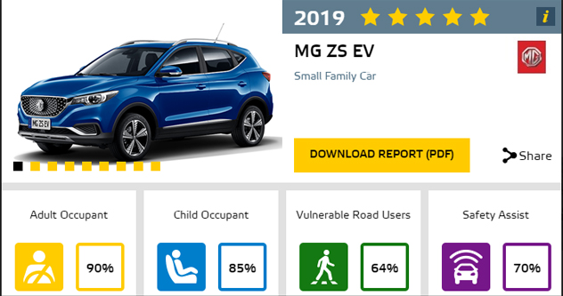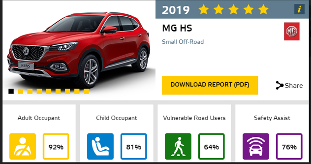 ความปลอดภัยในอุปกรณ์ช่วยเหลือต่างๆ (Safety Assist) โดยการประเมินผลจะสรุปผลคะแนนทั้งหมดและจัดระดับตั้งแต่ 1 ถึง 5 ดาว สำหรับ NEW MG HS และ NEW MG ZS EV ผ่านการทดสอบการชนตามมาตรฐานดังกล่าว และสามารถคว้ามาตรฐานความปลอดภัยในระดับสูงสุด คือระดับ 5 ดาว