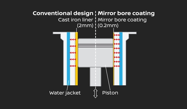 นอกเหนือจากสมรรถนะของเครื่องยนต์แล้ว เครื่องยนต์รุ่น HRA0 ใหม่นี้ ยังประกอบไปด้วยนวัตกรรมใหม่ ๆ ทางเทคโนโลยีมากมาย โดยนอกจาก เทอร์โบชาร์จเจอร์ที่มีวาวล์ควบคุมไอเสียระบบไฟฟ้า (electronically controlled waste guage) แล้ว ยังมีเทคโนยีการเคลือบกระบอกลูกสูบแบบ Miror Bore Coating เทคโนโลยีจาก นิสสัน จีที-อาร์ ซูเปอร์สปอร์ตคาร์ โดยการเคลือบกระบอกสูบแบบ Miror Bore Coating จะช่วยลดแรงเสียดทานและการสึกหรอของกระบอกสูบ และยังเพิ่มประสิทธิภาพการระบายความร้อนจากการเผาไหม้ จึงทำให้เครื่องยนต์ลดการใช้เชื้อเพลิง และมีการปล่อยคาร์บอนไดออกไซด์ลดลง เป็นมิตรต่อสิ่งแวดล้อมในทุกการขับขี่