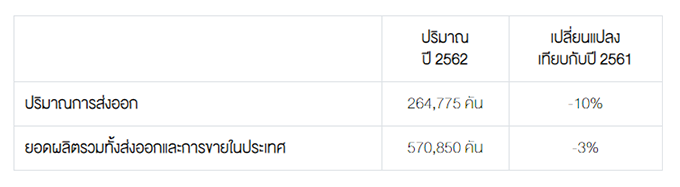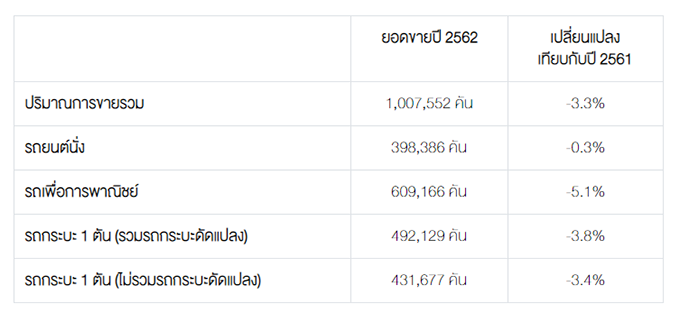 สถิติการขายรถยนต์ในประเทศปี 2562