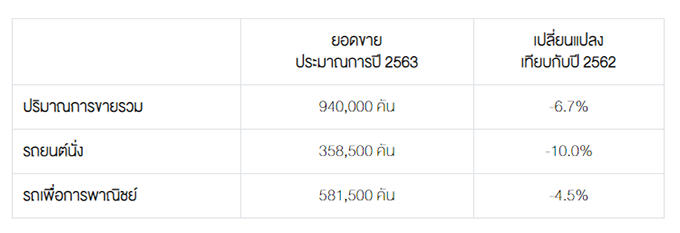 ประมาณการยอดขายรถยนต์ในประเทศปี 2563