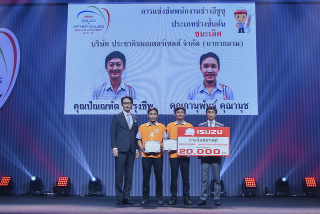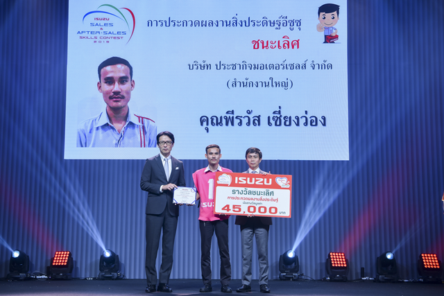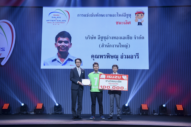 รางวัลชนะเลิศ ทักษะงานอะไหล่อีซูซุ ได้แก่ คุณพรพิษณุ อ่วมอารี จากบริษัท อีซูซุอ่างทองเอเซีย จำกัด (สำนักงานใหญ่) รับเงินรางวัล 100,000 บาท พร้อมโล่เกียรติยศ และประกาศนียบัตร