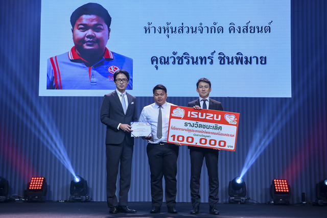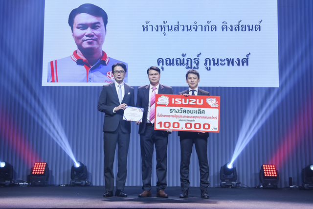 รางวัลชนะเลิศ ที่ปรึกษาการขายอีซูซุ ประเภทรถปิกอัพและรถยนต์นั่งอเนกประสงค์ ได้แก่ คุณวัชรินทร์ ชินพิมาย จากห้างหุ้นส่วนจำกัด คิงส์ยนต์ และประเภทรถบรรทุกขนาดกลางและใหญ่ ได้แก่ คุณณัฏฐ์ ภูนะพงศ์ จากห้างหุ้นส่วนจำกัด คิงส์ยนต์ (สามแยกปักธงชัย) รับเงินรางวัลท่านละ 100,000 บาท พร้อมโล่เกียรติยศ และประกาศนียบัตร