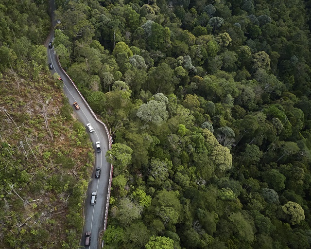 เริ่มเดินทางจากในตัวเมืองสู่เส้นทางหลวง E1 ที่ดีที่สุดของมาเลเซีย เส้นทางจากโรงแรมที่พักจะต้องลอดผ่านอุโมงค์ที่มีความยาวมากราว ๆ 2 กิโลเมตร และตัดเข้าทางหลวง E20 พร้อมจอดแวะจุดพักริมทาง "ลองชิมอาหารและกาแฟท้องถิ่น" ดูบ้าง หนึ่งในนั้นคือ กล้วยที่ปั้นให้กลมและทอด คล้ายกล้วยทอดของไทยแต่รสชาติเหมือนเค้กกล้วยหอมแหะ!