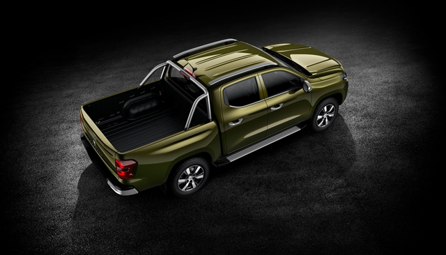 รถปิคอัพเปอโยต์ แลนด์แทร็ค ขนาด 1.2 ตัน รูปทรงเหลี่ยมแต่ออกแบบชิ้นส่วน เช่น ไฟหน้า กระจังหน้า และบันได้ข้างได้อย่างลงตัว เน้นเส้นสายของซุ้มล้อที่ดูบึกบึน ราวหลังคาและโรลบาร์พร้อมเพื่อการบรรทุก