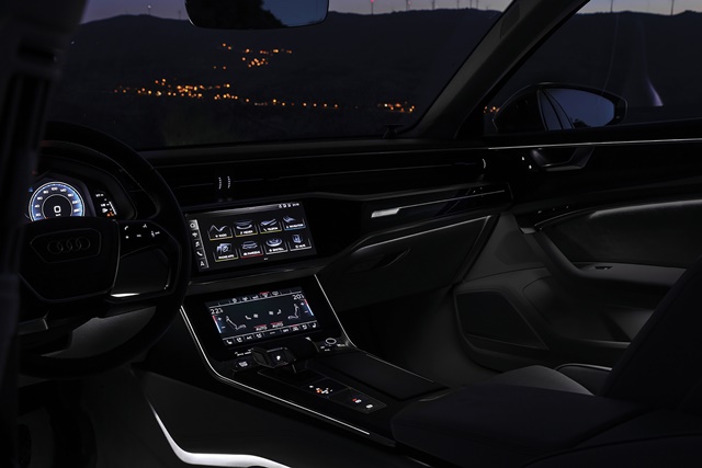 Audi A6 มาพร้อมทัชกรีน 2 จอแบบ Full HD จอด้านบนขนาด 10.1 นิ้ว และจอด้านล่างขนาด 8.6 นิ้ว เช่น ฟังก์ชันการทำงานรองรับ Apple CarPlay โดยสามารถเชื่อมต่อกับไอโฟนได้ง่ายๆ ทั้งแบบไร้สาย Wireless ผ่าน Bluetooth หรือใช้สาย USB เพิ่มความสะดวกในการใช้งานภายในห้องโดยสารยามค่ำคืน ด้วยไฟ LED สีขาว ที่เพิ่มการส่องสว่างอย่างเต็มที่ เบาะนั่งแบบสปอร์ต กระชับลำตัวช่วยให้การควบคุมรถเป็นไปอย่างง่ายดาย เบาะหรูหราหุ้มหนังแท้ Valcona ให้ผิวสัมผัสละเอียด ติดตั้งเป็นอุปกรณ์มาตรฐานทั้ง 2 รุ่น